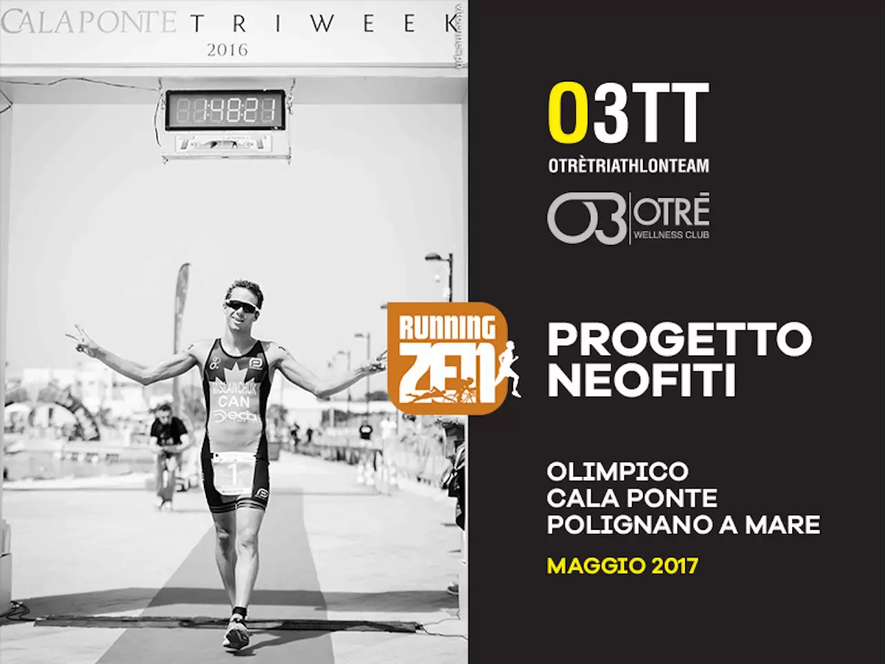 Il progetto è ideato e organizzato da RunningZen in collaborazione con Otrè Triathlon Team e Otrè Wellness Club; vuole essere un “inno al benessere“ raggiunto tramite la triplice disciplina gestita a livello amatoriale (Nuoto, Bici, Corsa), una sfida a portata di tutti per partecipare al primo Triathlon Olimpico Calaponte TriWeek Maggio 2017, seguiti passo dopo passo per tutta la vostra preparazione da uno staff tecnico specializzato. La nostra Mission è di promuovere il benessere mediante il Triathlon e coinvolgervi numerosi in questo progetto, per tutti coloro che non hanno ancora avuto il coraggio di iniziare a praticarlo in maniera costante e regolare, ma hanno voglia di provarci. Per tutti coloro che hanno iniziato a praticarlo in maniera individuale, in una sorta di “fai da te” , ma che hanno la necessità di uno staff tecnico e una organizzazioen che li segua, e di un gruppo con cui condividere allenamenti collettivi !